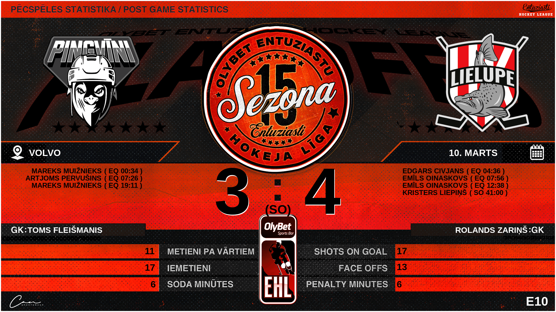 | 41:00 | LLR | GK Out | #99 Rolands Zariņš |