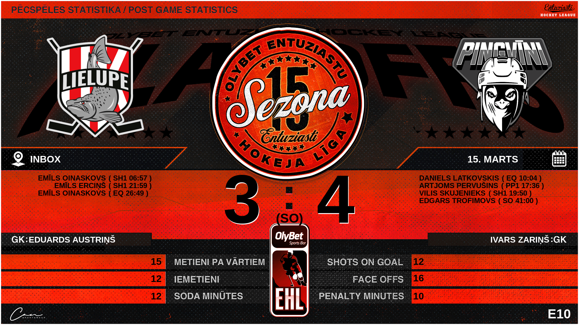 | 41:00 | PNX | Vārti (SO) LLR 3 : 4 PNX | #71 Edgars Trofimovs |