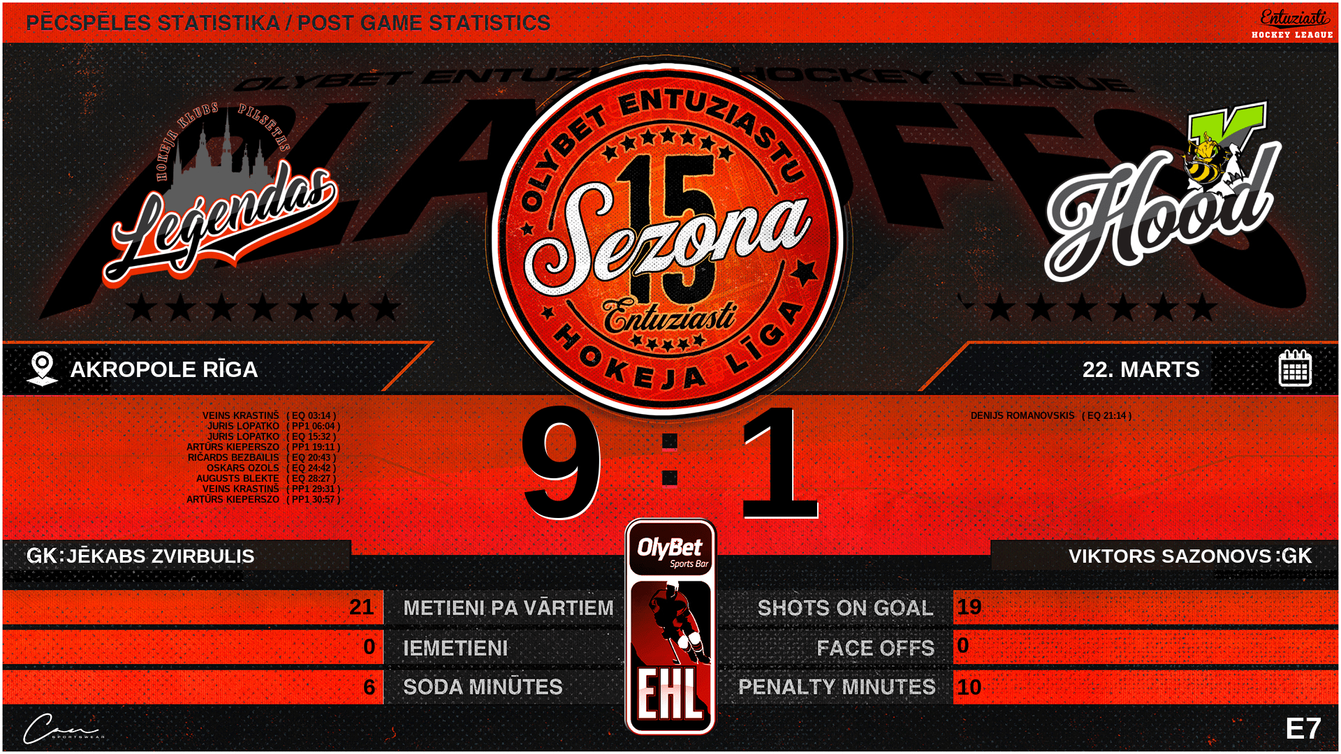 | 21:14 | KNG | Vārti (EQ) PL7 5 : 1 KNG | #91 Denijs Romanovskis, piespēles: #10 Jānis Diedišķis, #88 Jorens Junkulis |