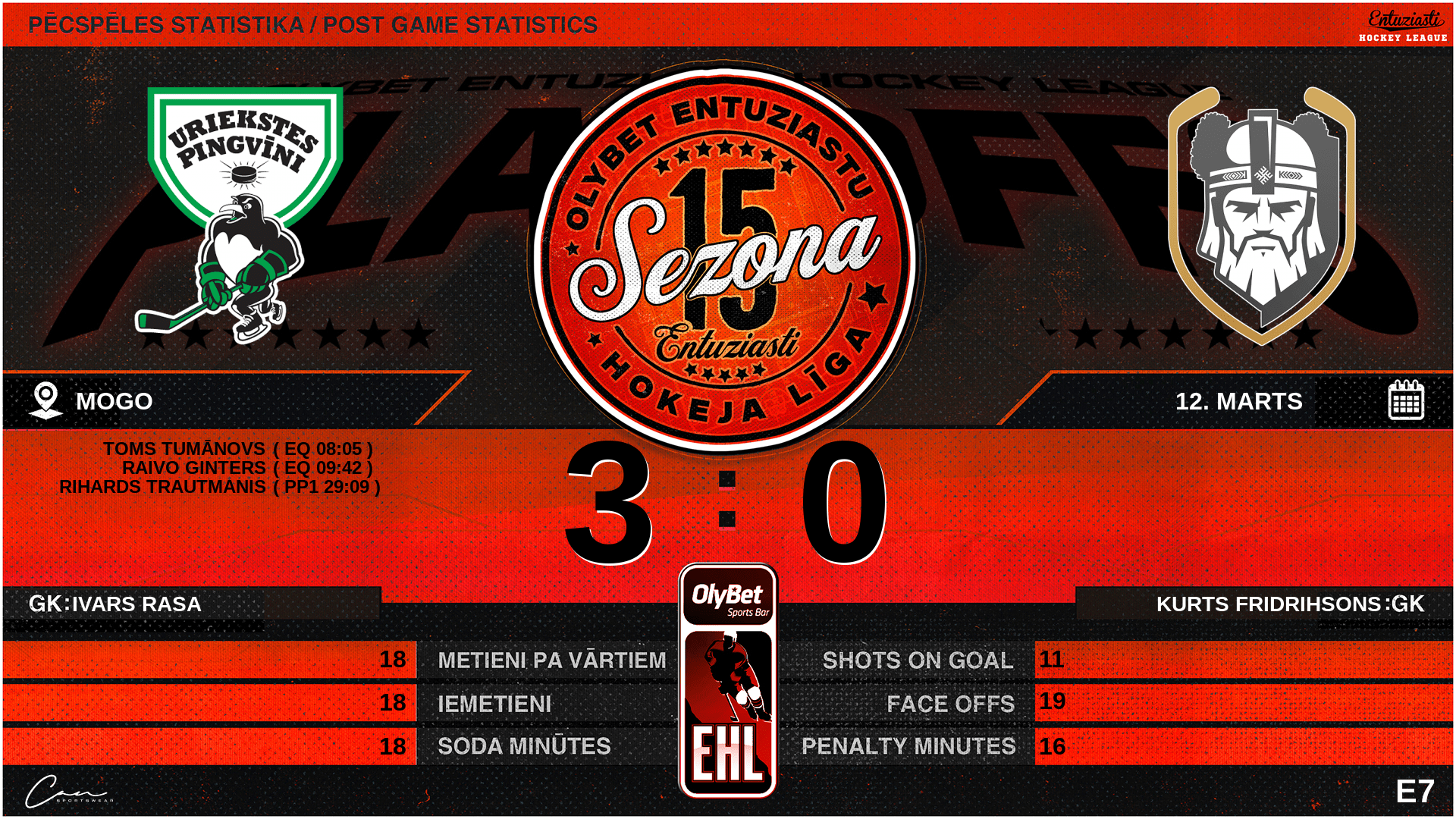 | 29:09 | UPG | Vārti (PP1) UPG 3 : 0 PGN | #41 Rihards Trautmanis, piespēles: #16 Jānis Sokolovs, #24 Raivo Ginters |