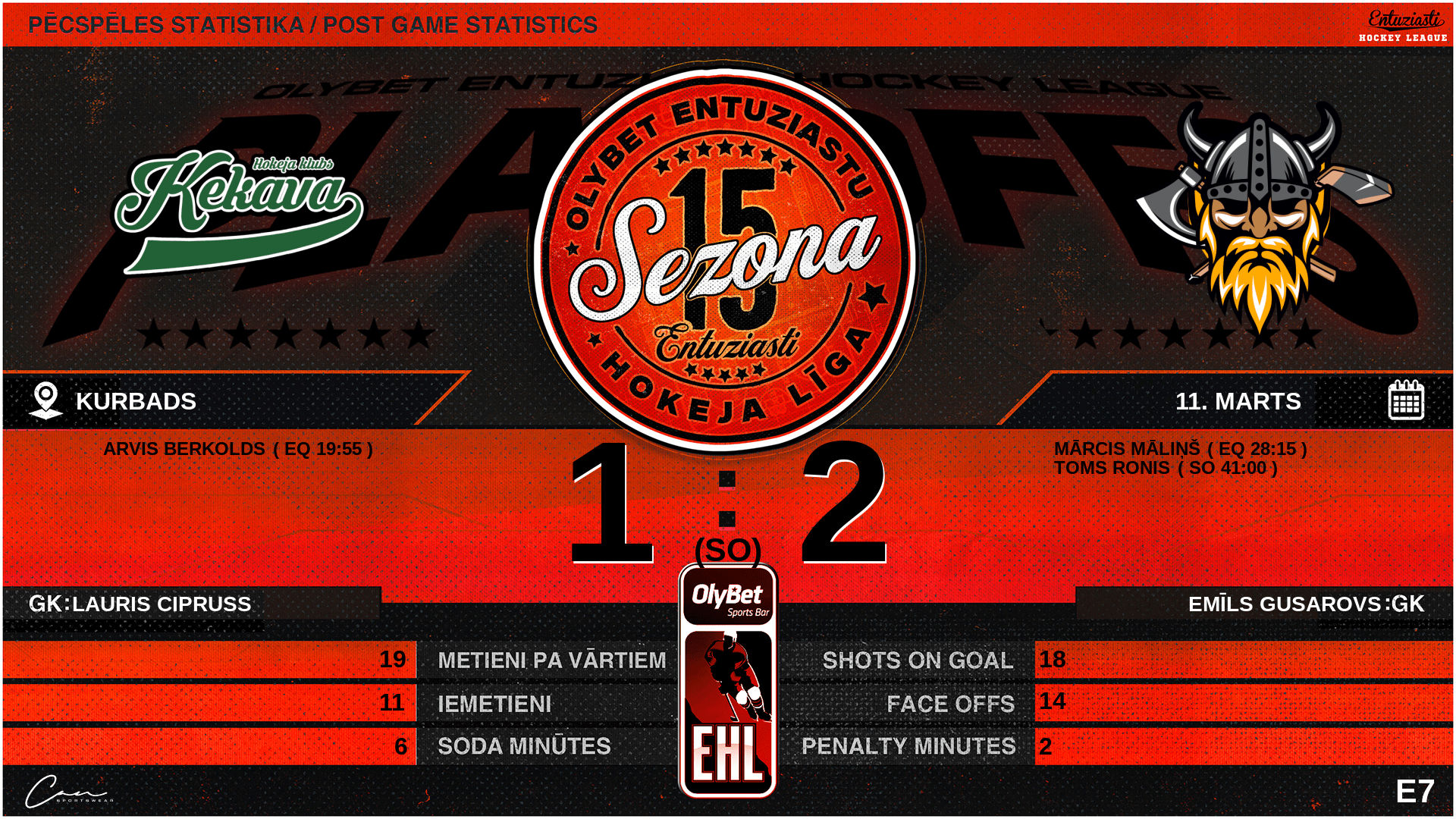 | 28:15 | VN2 | Vārti (EQ) ĶE3 1 : 1 VN2 | #29 Mārcis Māliņš, piespēles: #9 Rolands Veikša, #81 Toms Ronis |