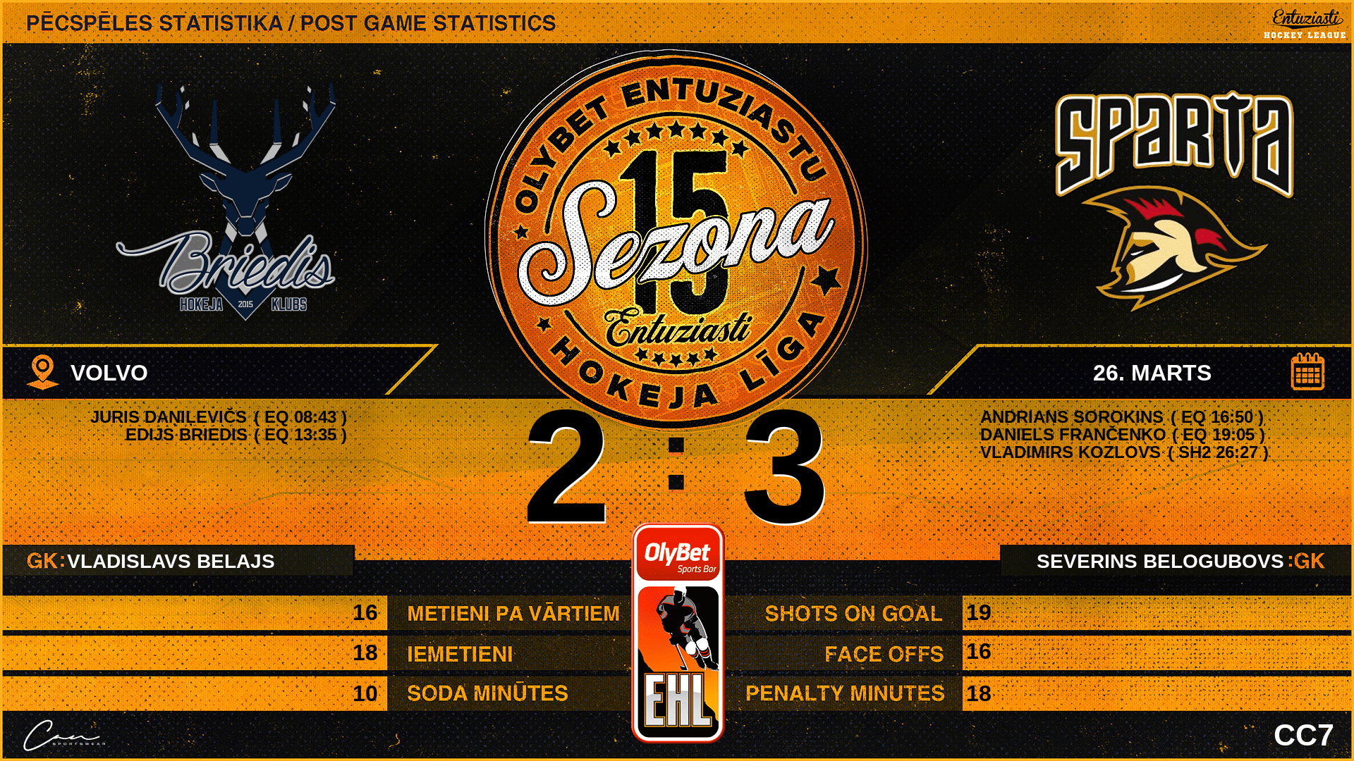 | 19:05 | SP2 | Vārti (EQ) BRD 2 : 2 SP2 | #72 Daniels Frančenko |