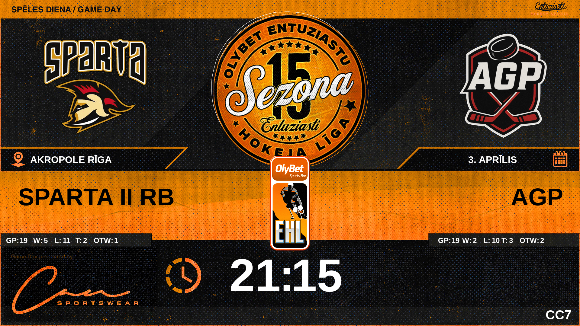 | 00:00 | AGP | GK In | #31 Jānis Baronovs |