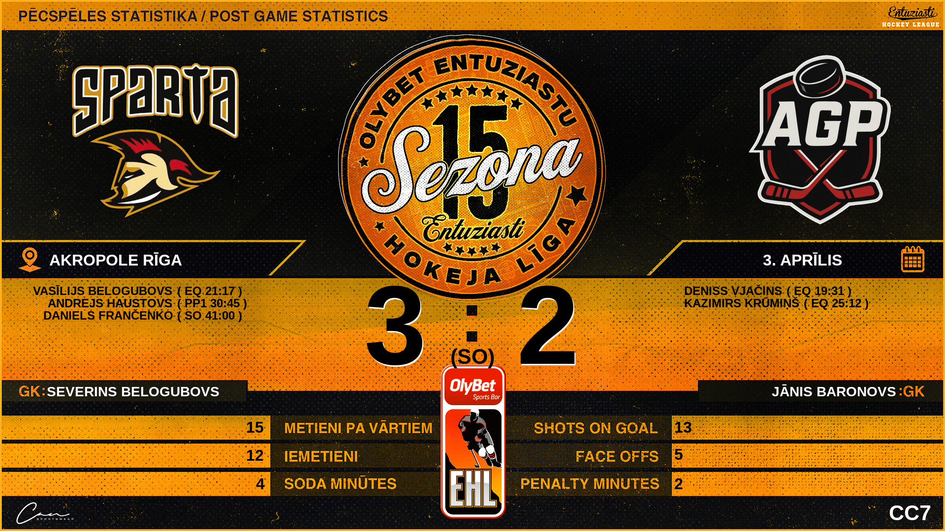 | 25:12 | AGP | Vārti (EQ) SP2 1 : 2 AGP | #69 Kazimirs Krūmiņš |