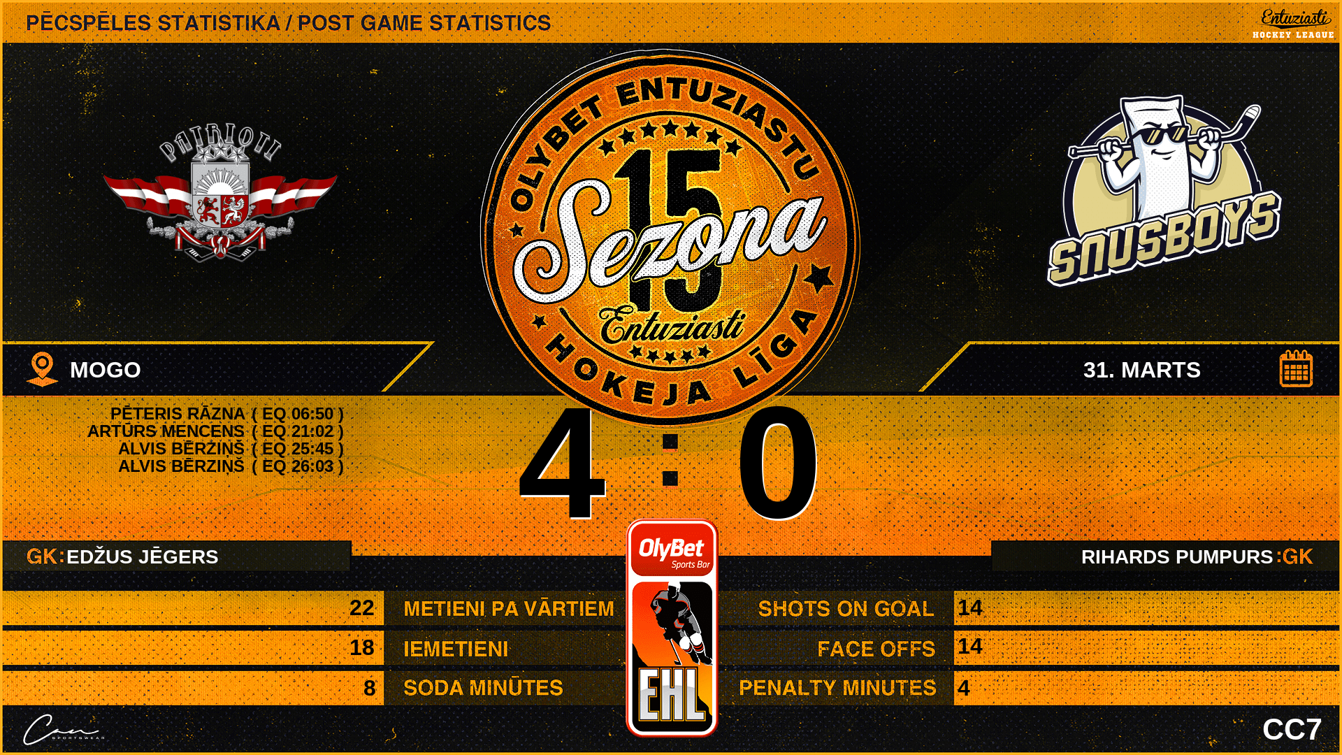 | 18 | Kārlis SUDRABS | D | 0 | 0 | 0 | 4 |