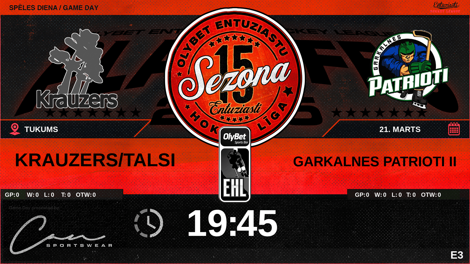 | 00:00 | KRZ | GK In | #1 Gustavs Huhka |