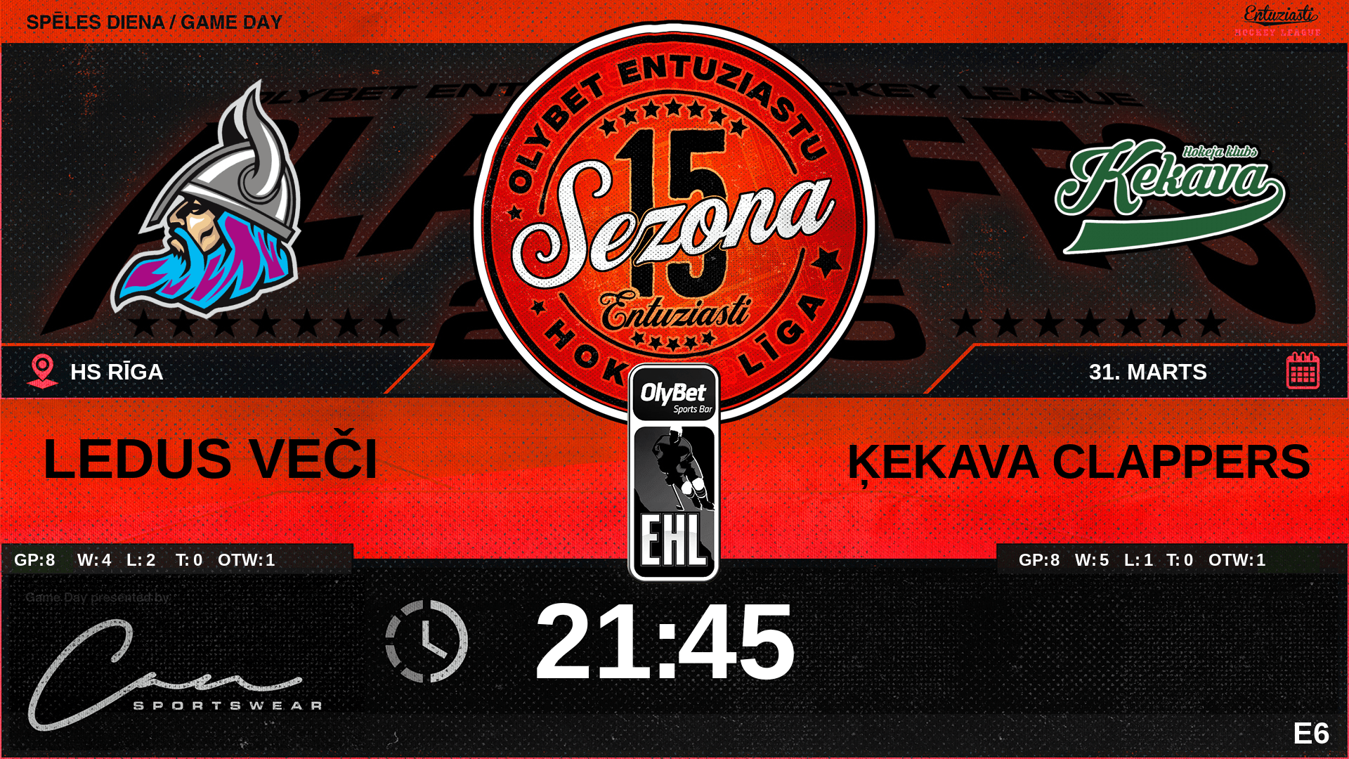 | 00:00 | ĶE2 | GK In | #88 Artūrs Kauliņš |