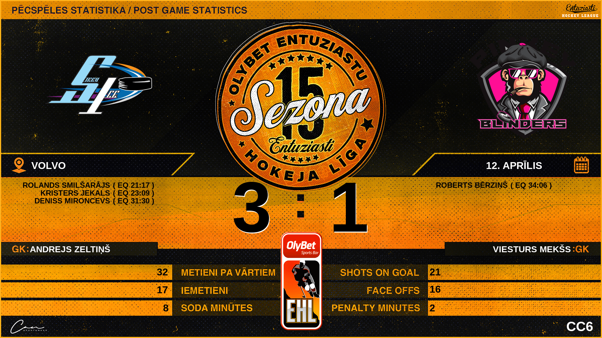 | 36:00 | STV | GK Out | #1 Andrejs Zeltiņš |