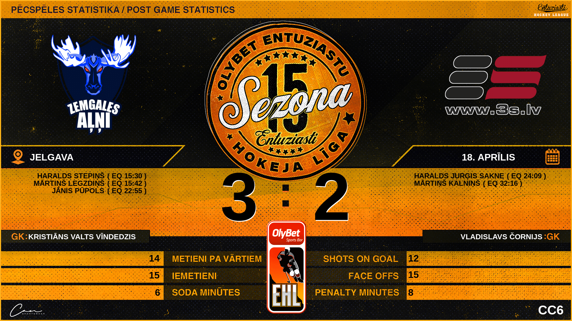 | 32:16 | 3S2 | Vārti (EQ) ZGA 3 : 2 3S2 | #19 Mārtiņš Kalniņš, piespēles: #42 Ralfs Kristians Rozenfelds, #90 Artūrs Olekšs |