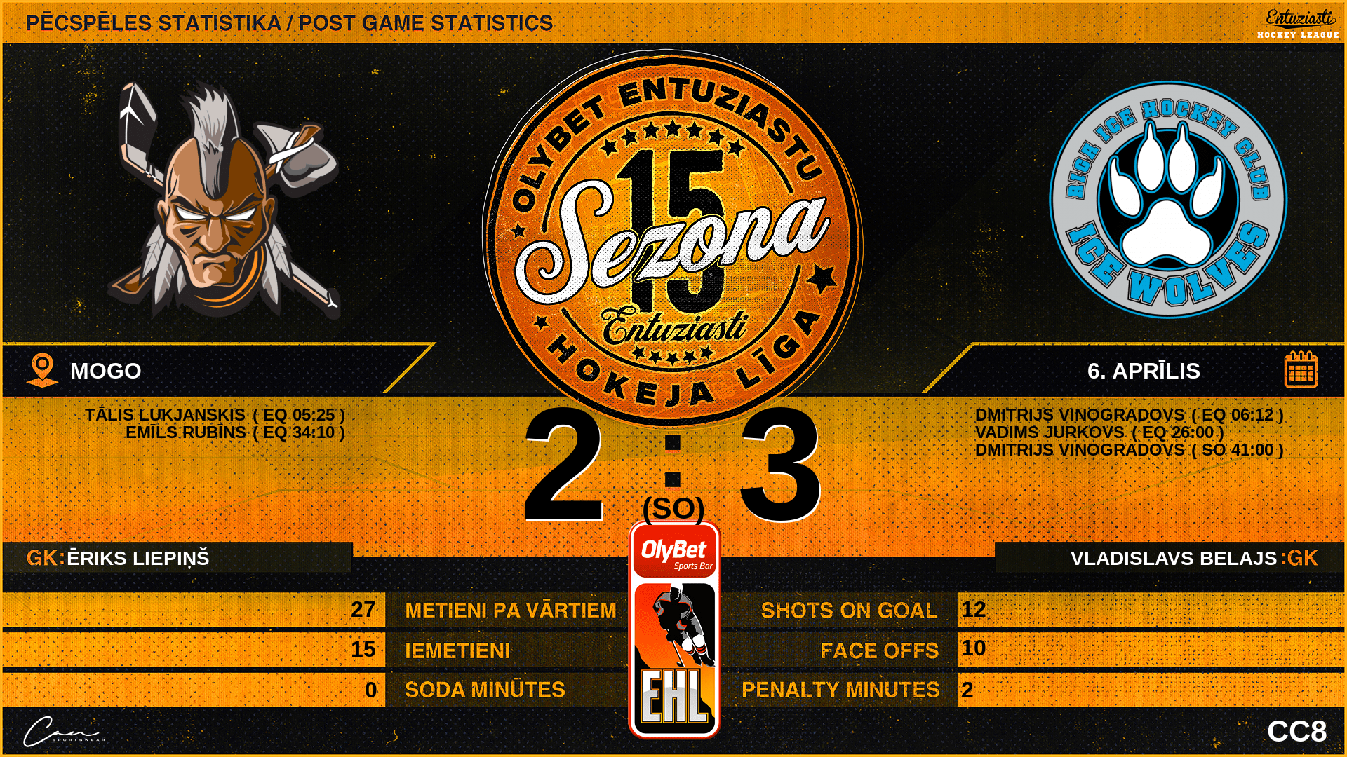 | 43:00 | WF5 | SO vārti | #29 Dmitrijs Vinogradovs |