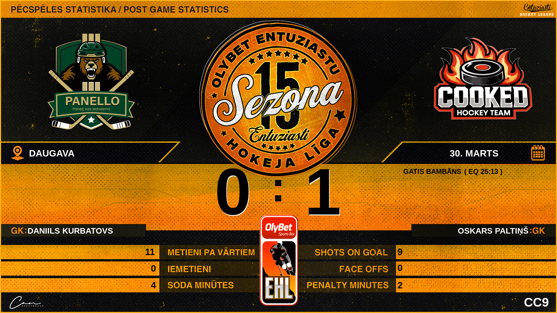 | 36:00 | PNL | GK Out | #1 Daniils Kurbatovs |