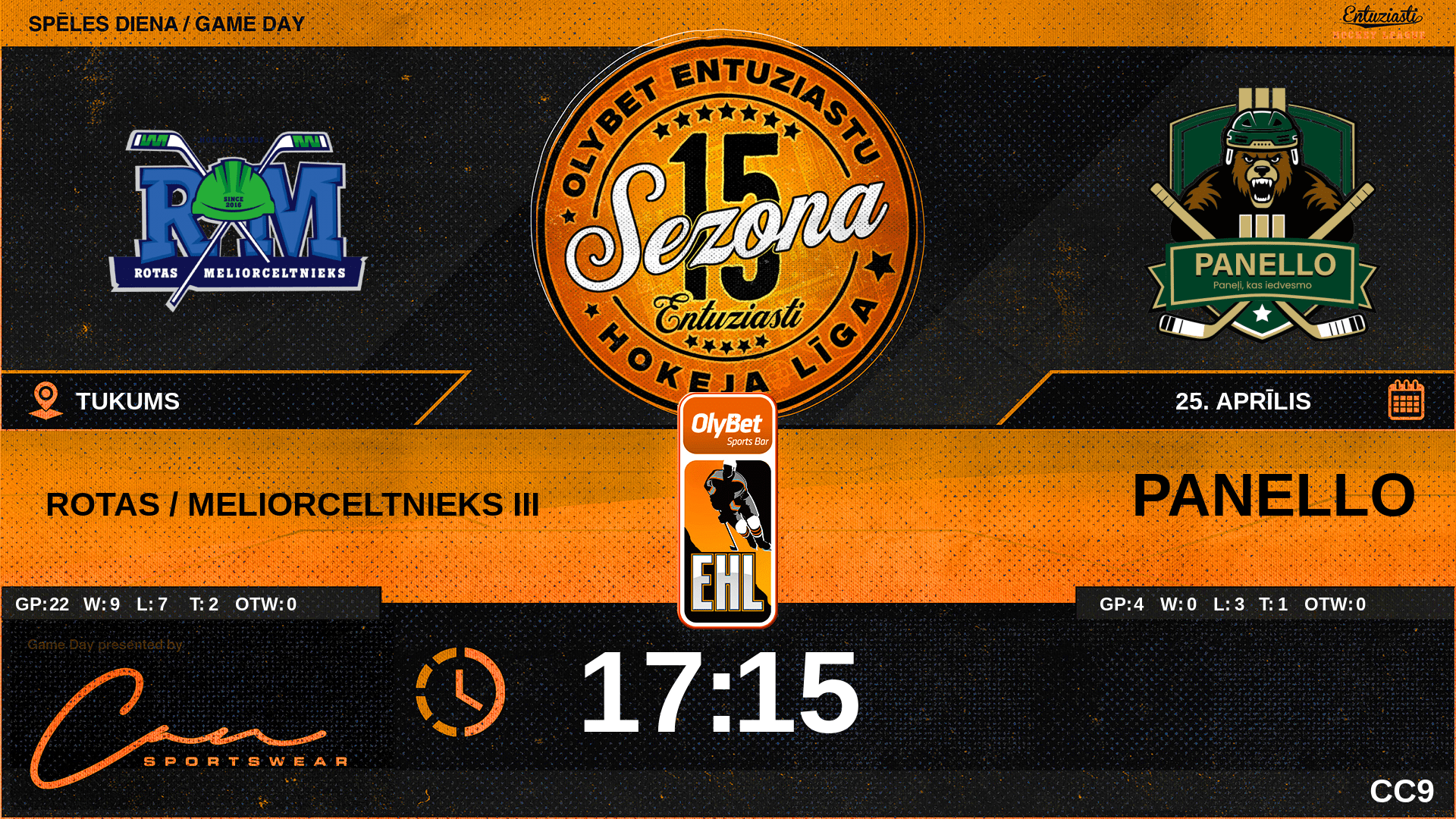 | 00:00 | PNL | GK In | #1 Artis Dmitrijevs |