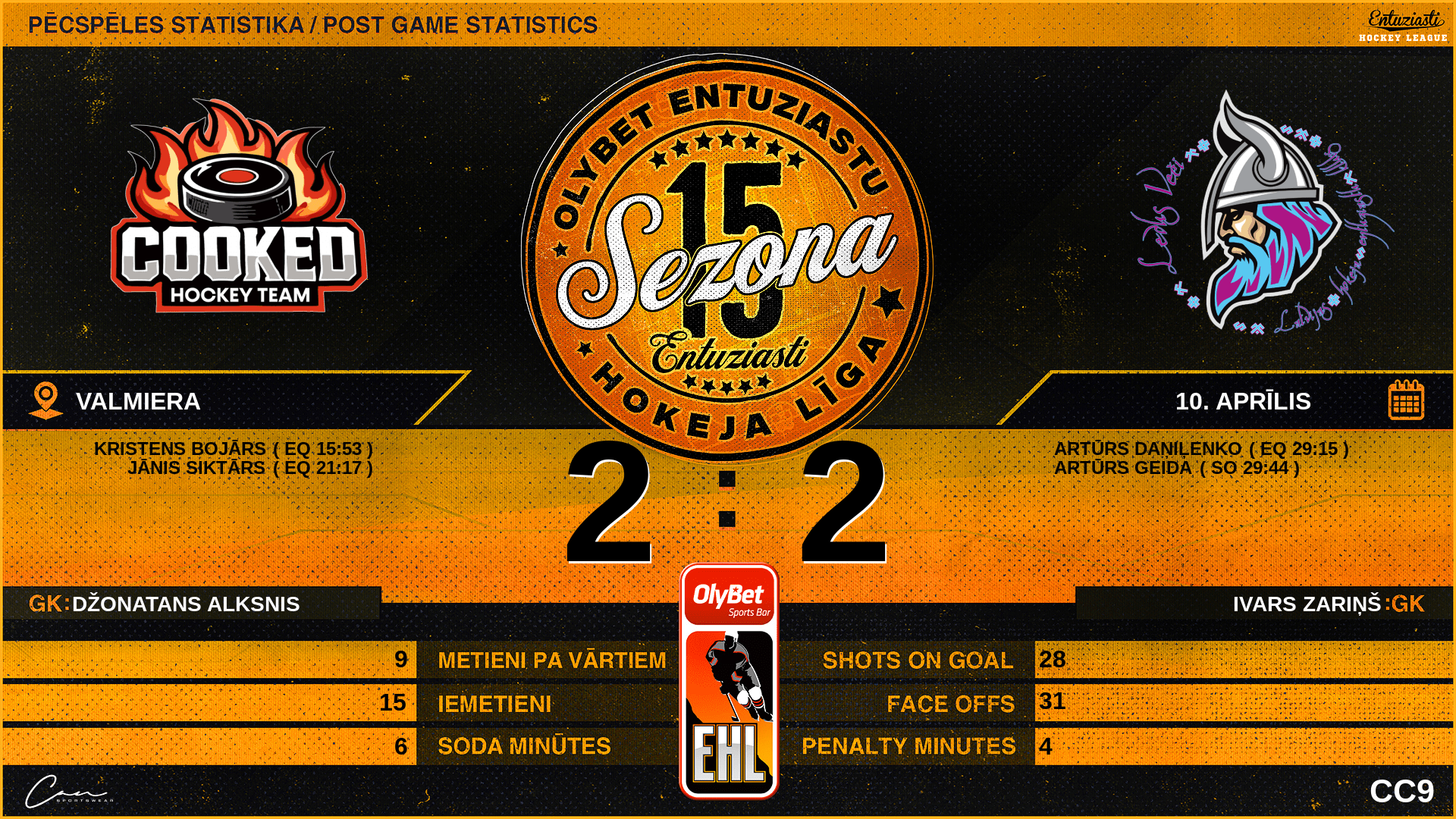 | 43:00 | CK2 | SO vārti | #9 Jānis Siktārs |