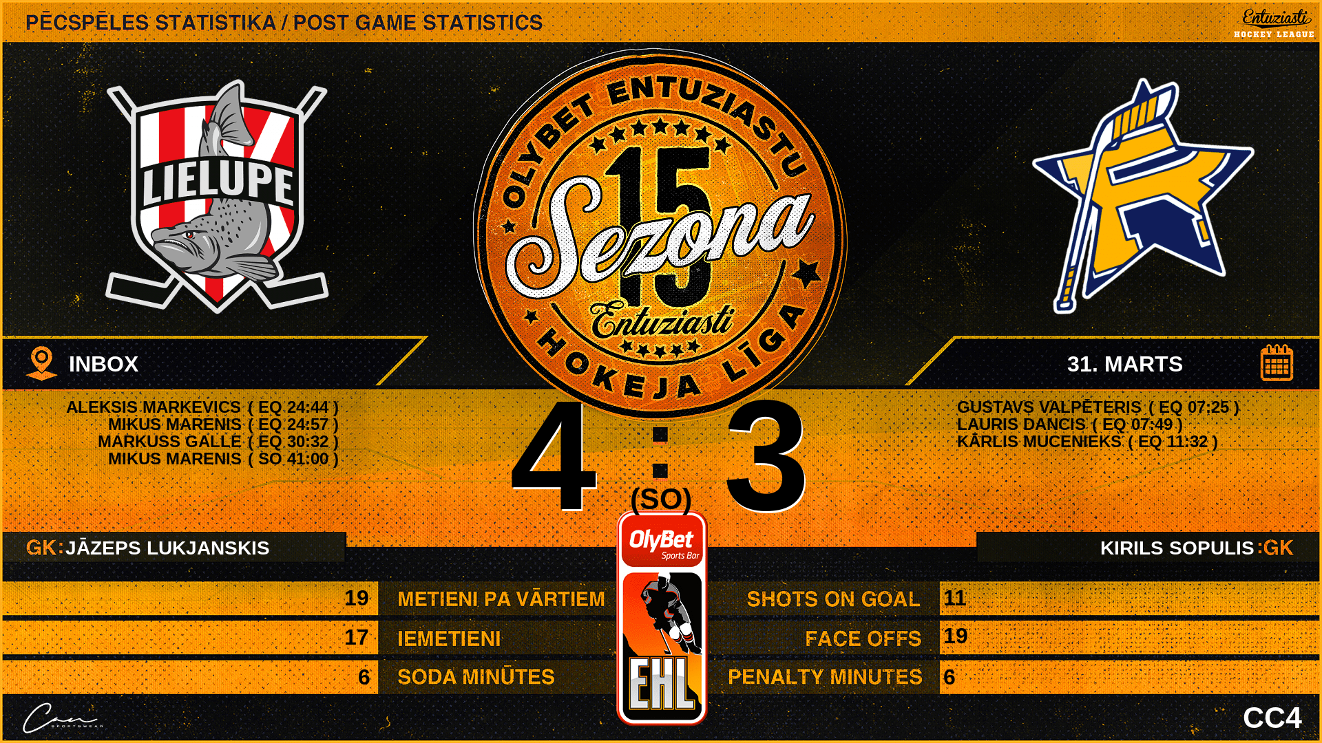 | 41:00 | LLP | GK Out | #99 Jāzeps Lukjanskis |