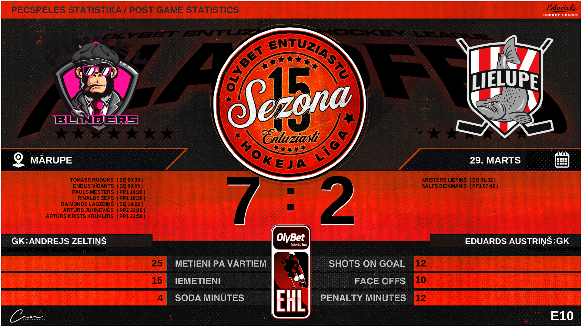 | 36:00 | PB2 | GK Out | #91 Andrejs Zeltiņš |