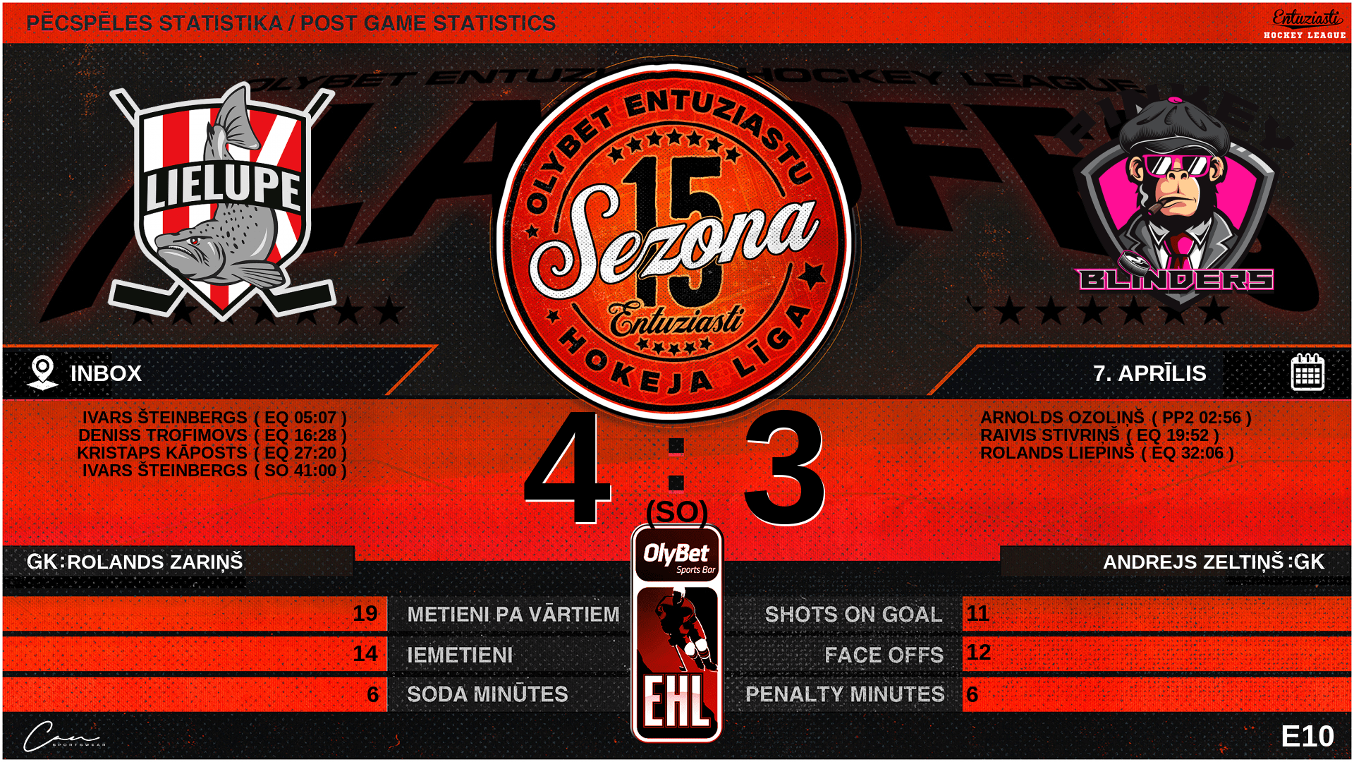 | 19:08 | LLR | Soda metiens | #87 Emīls Erciņš |